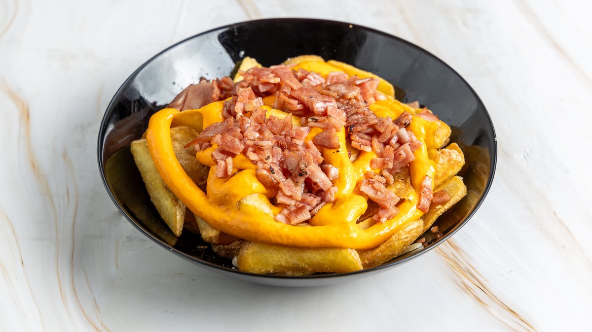 Με μπέικον, gouda, ζαμπόν, ντομάτα, μαρούλι και μαγιονέζα. Συνοδεύεται από πατάτες τηγανητές και dip ketchup
