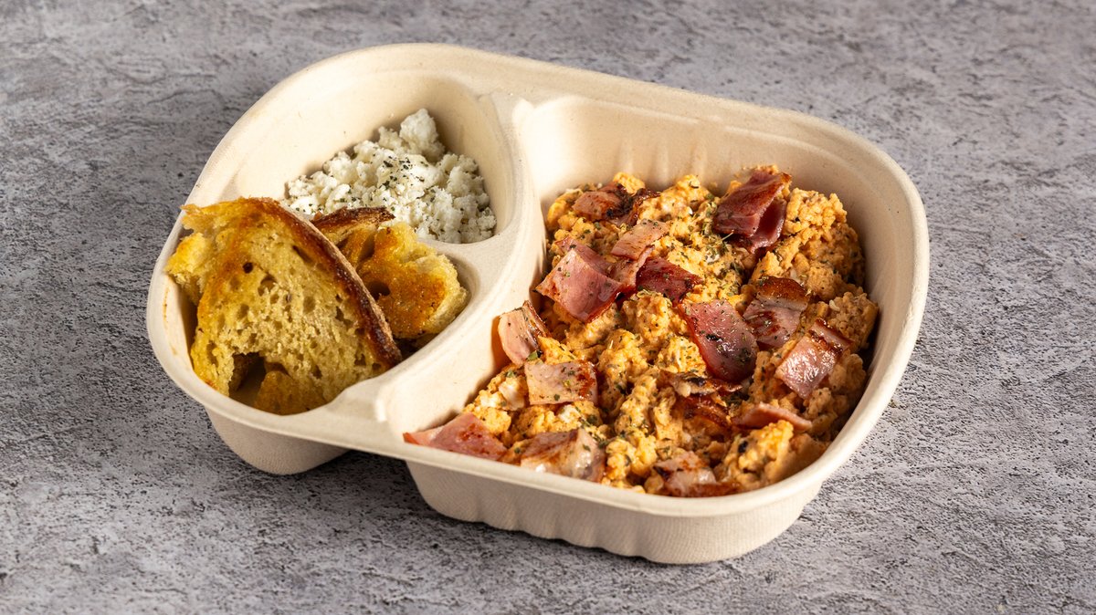 Ψωμί brioche γεμιστό με sour cream, χτυπητά αυγά με πάστα τρούφας και bacon
