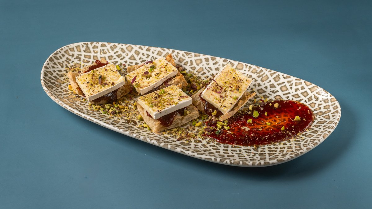 Καραμελωμένο κρεμμύδι, crispy κάπαρη, ξύδι Sherry και ελαιόλαδο