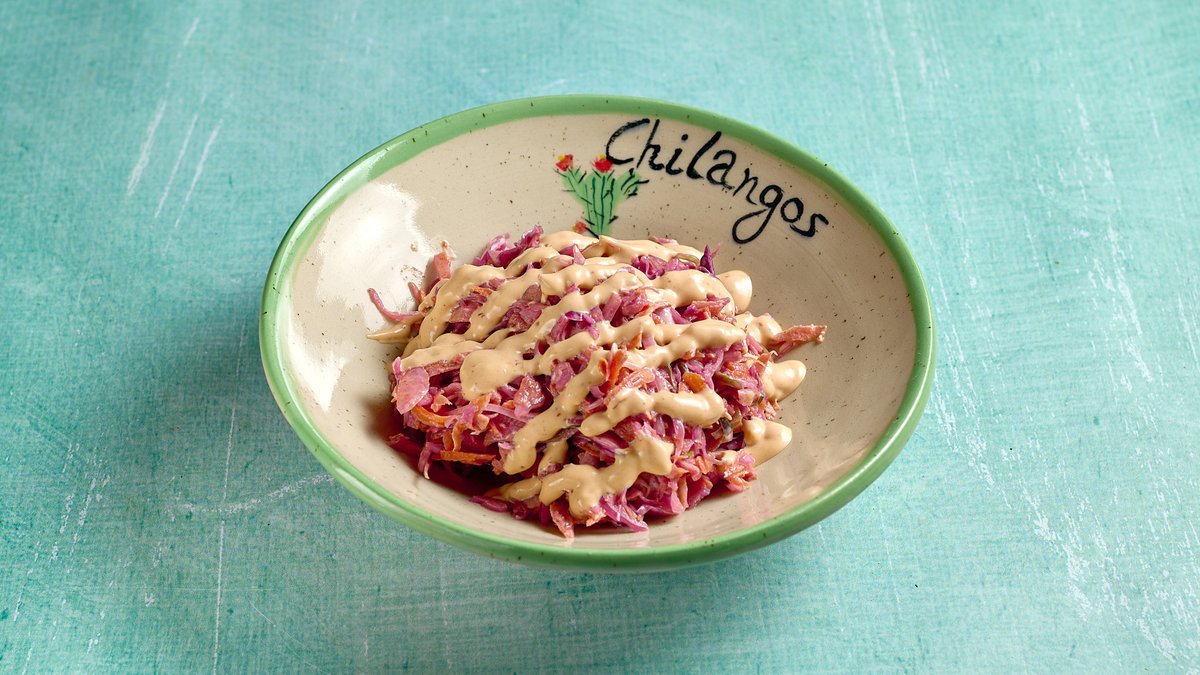 Ανάμεικτο λάχανο, καρότο, τριμμένο ξινόμηλο, λευκό κρεμμύδι και chipotle mayo