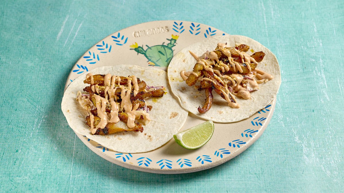 2 τεμάχια. tortilla με ψητή μαριναρισμένη πανσέτα, chipotle colesalw, corn nuts και chipotle mayo