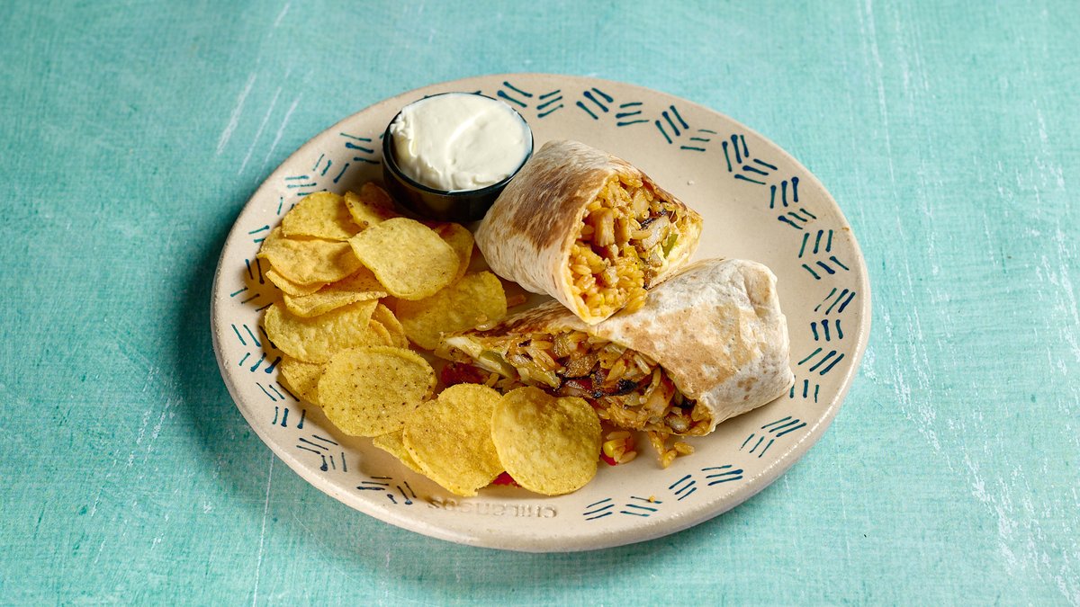 Με ψητό κοτόπουλο, φρέσκια ντομάτα, ρύζι και τυρί. Συνοδεύεται από nachos και sour cream