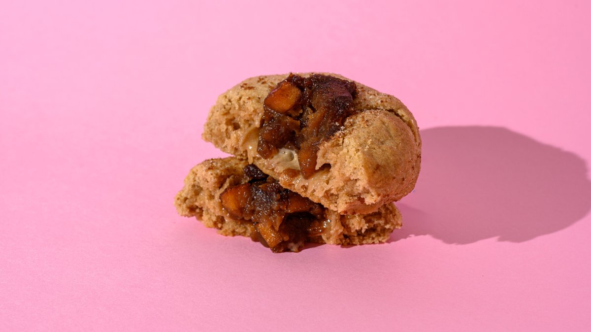 Our 120gr chunky cookie with a filling of apple cinnamon and brown sugar