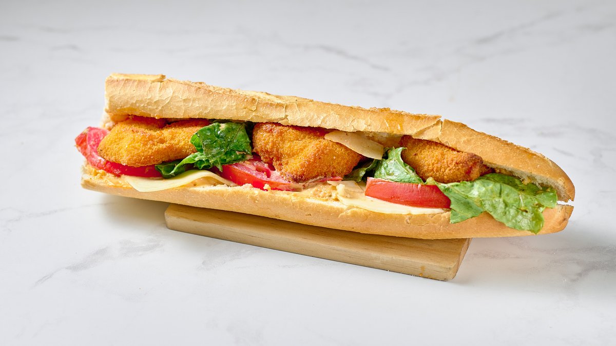 Με κοτομπουκιές, gouda, ντομάτα, λόλα και cocktail σως