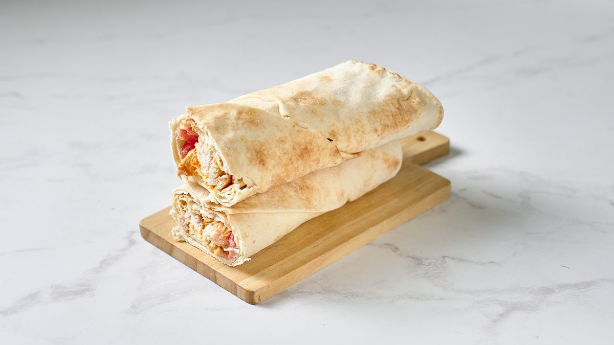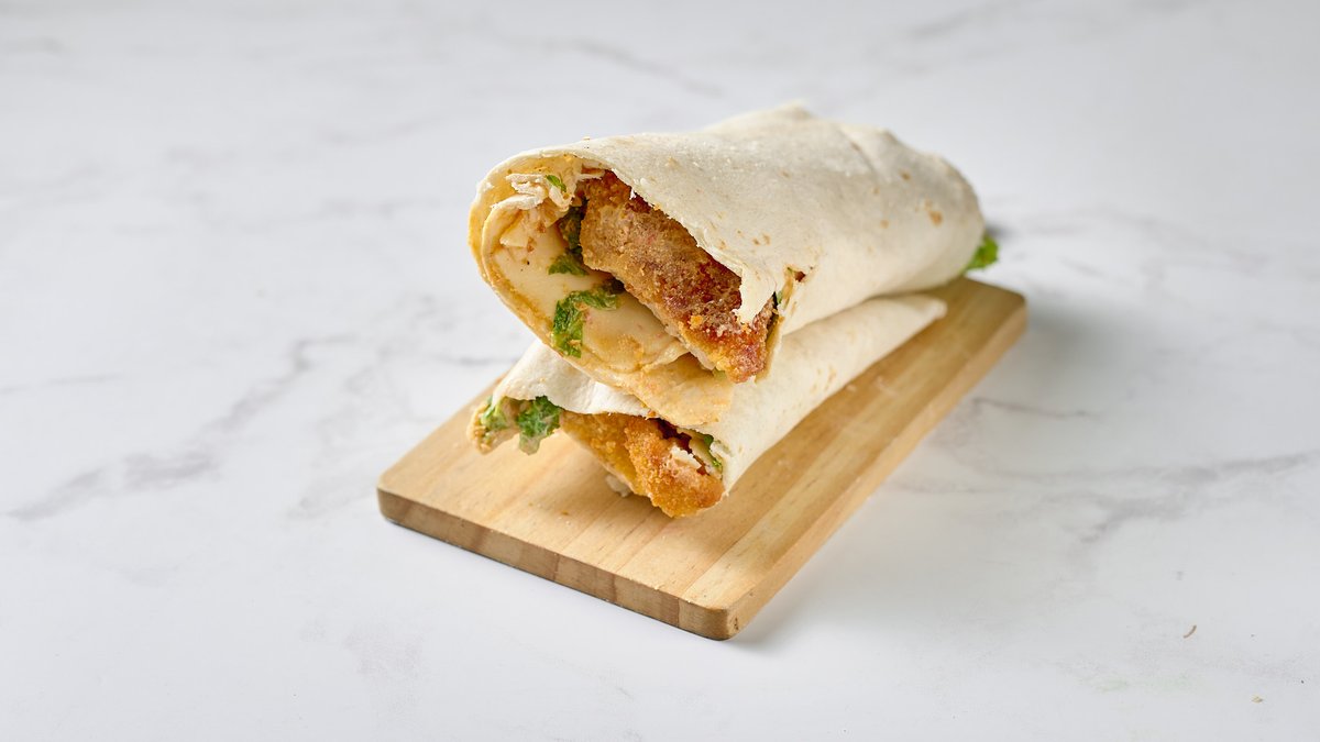 Με κοτομπουκιές, flakes παρμεζάνας, gouda, ντομάτα, λόλα και cocktail σως