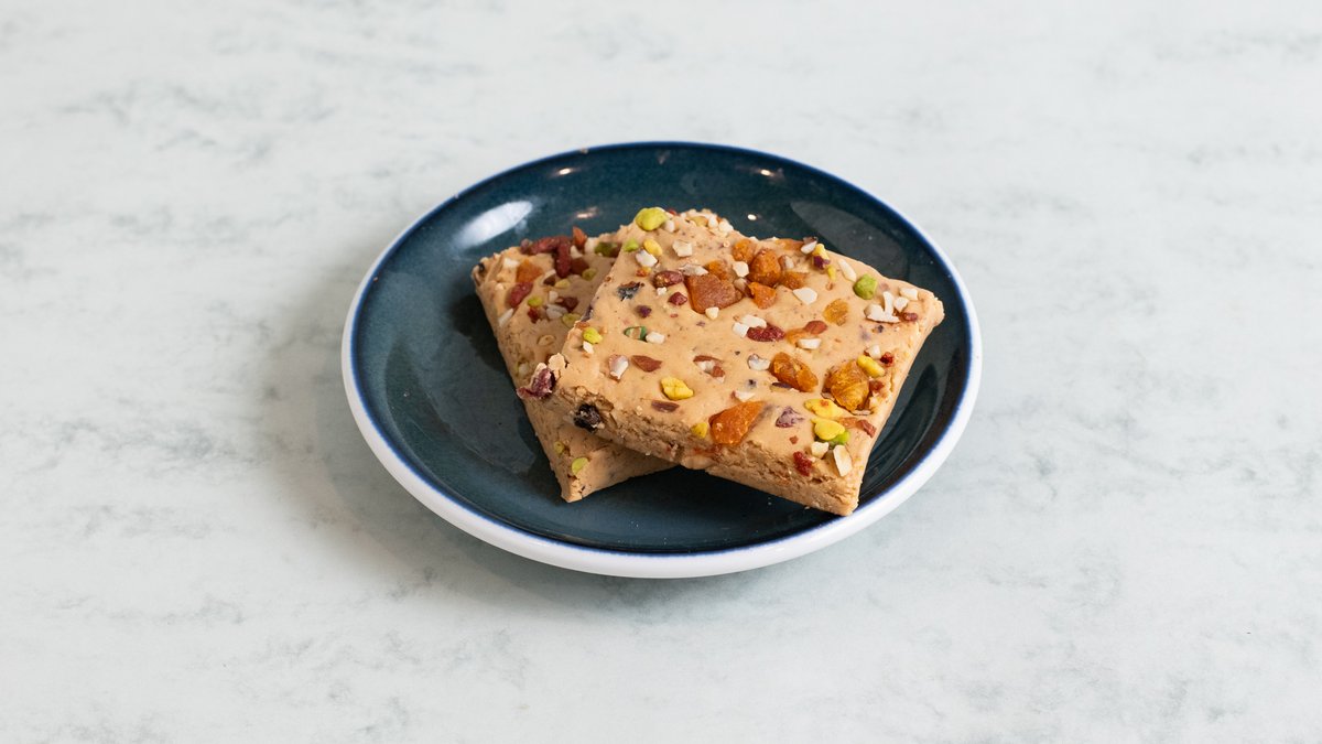 Με αμύγδαλο, φυστίκι, cranberry, βρώμη, μέλι, αμυγδαλοβούτυρο, πικραμύγδαλο και λευκή σοκολάτα