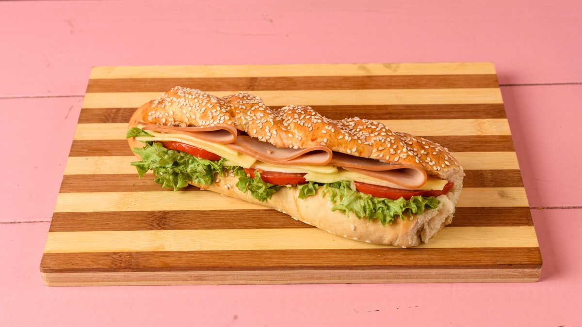 Με γαλοπούλα, τυρί gouda, μαγιονέζα, λόλα πράσινη, ντομάτα