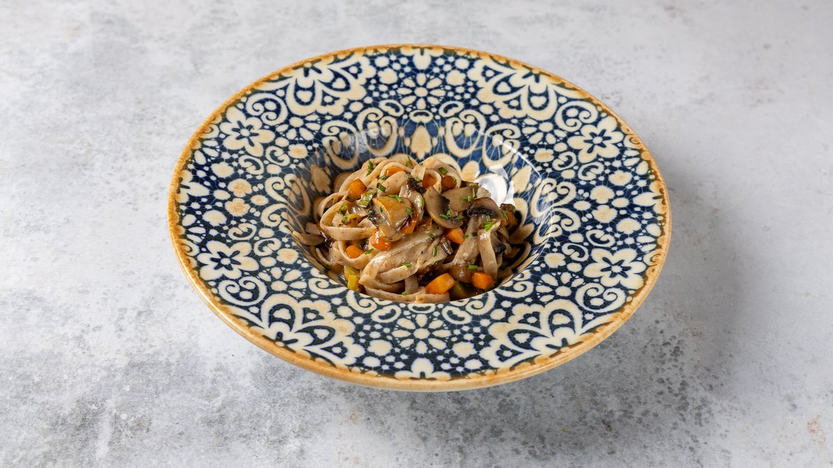 Ταλιατέλες χειροποίητες ολικής άλεσης με φρέσκα λαχανικά εποχής. Συνοδεύεται από χειροποίητο ψωμάκι