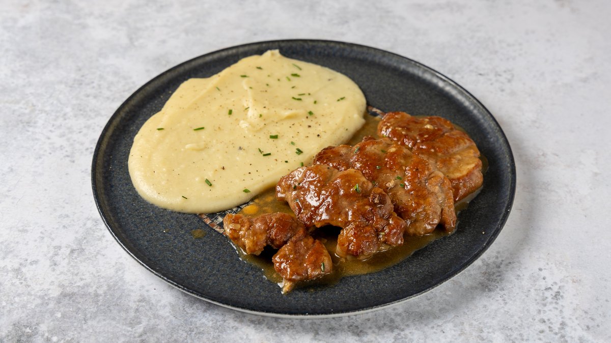 Ψαρονέφρι σβησμένο με λευκό κρασί Pinot Grigio σε σάλτσα λεμονιού και θυμάρι. Συνοδεύεται από φρέσκο πουρέ πατάτας και χειροποίητο ψωμάκι