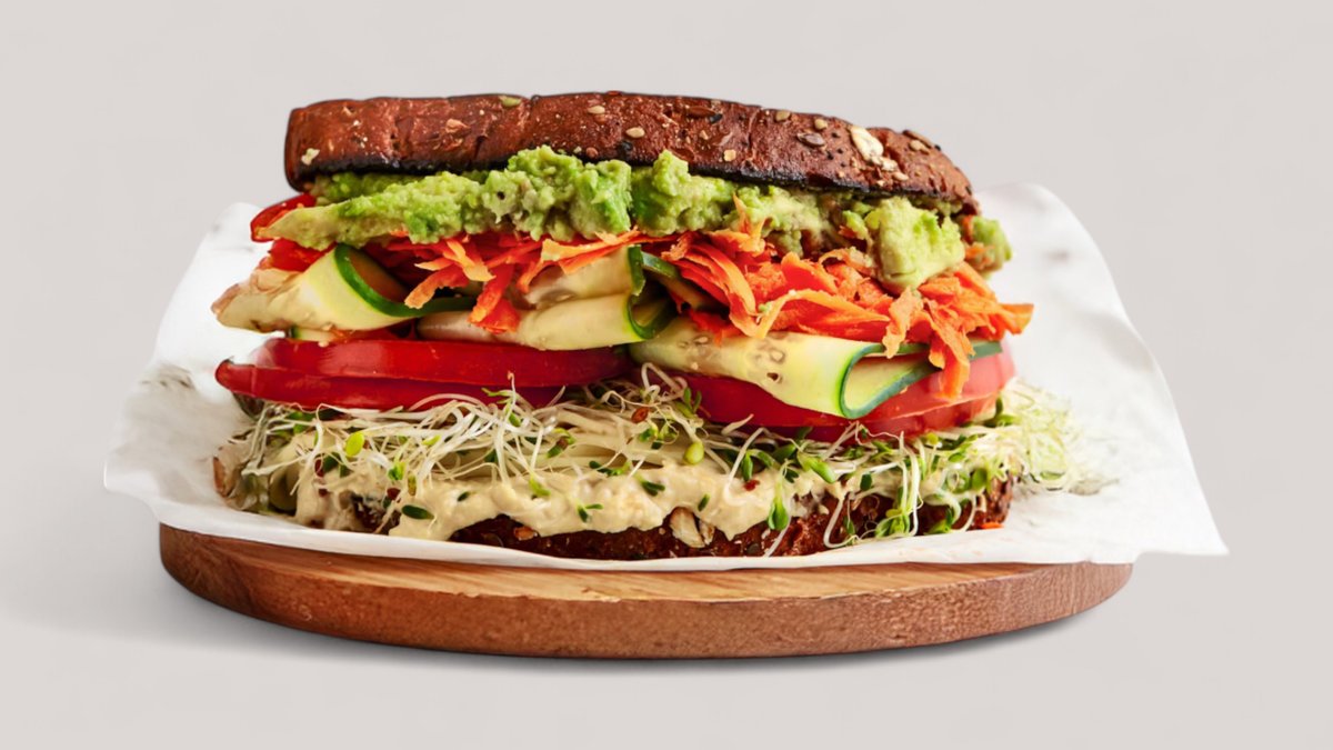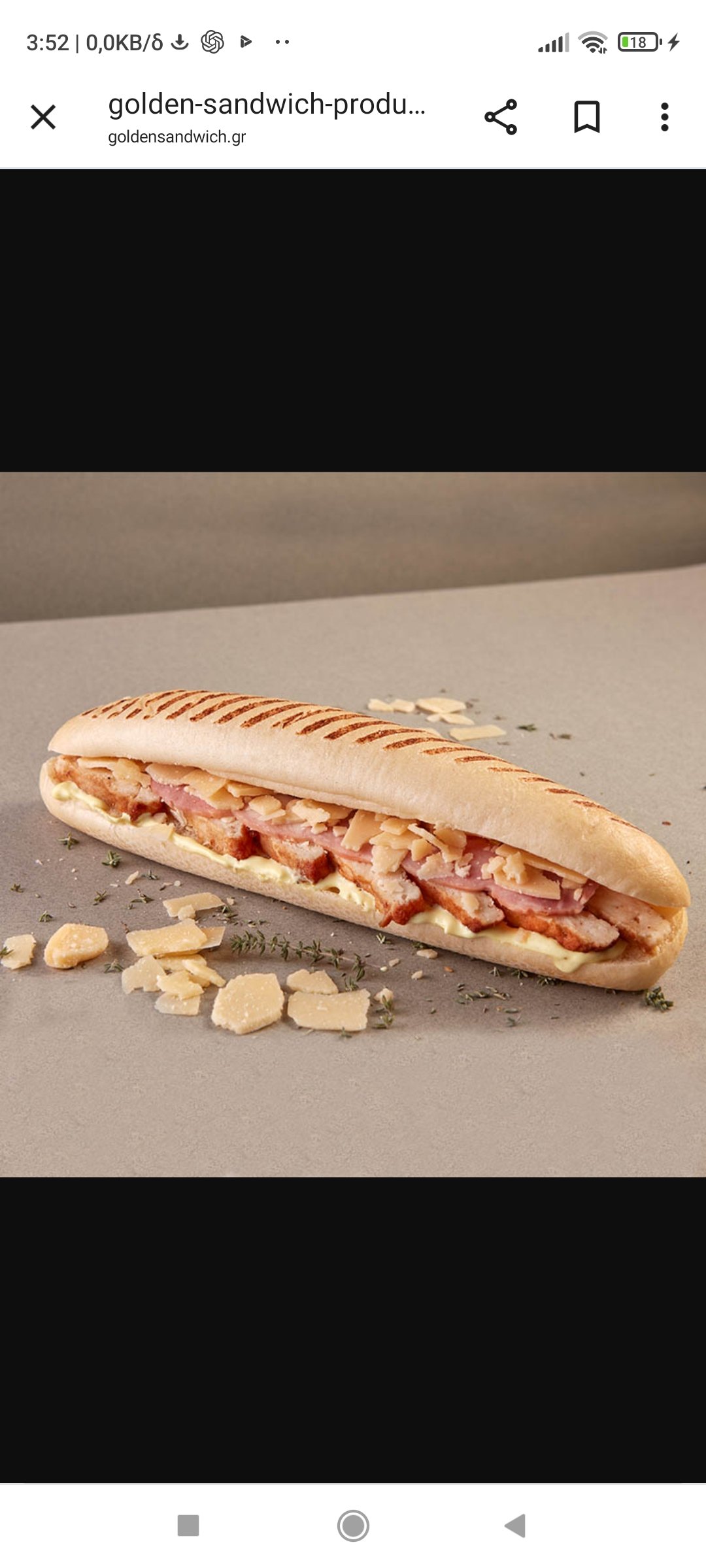 Με τυρί gouda, ζαμπόν, μπέικον, ντομάτα, μαρούλι και μαγιονέζα. Συνοδεύεται από πατάτες τηγανητές