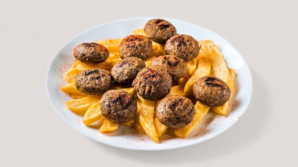 6 Τεμάχια. Συνοδεύεται από πατάτες τηγανητές, ντομάτα και αγγούρι
