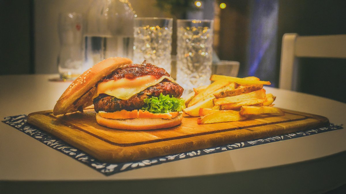 Με μπιφτέκι ανάμεικτο, τυρί gouda, ketchup, ντομάτα, μαρούλι και μουστάρδα. Συνοδεύεται από πατάτες τηγανητές