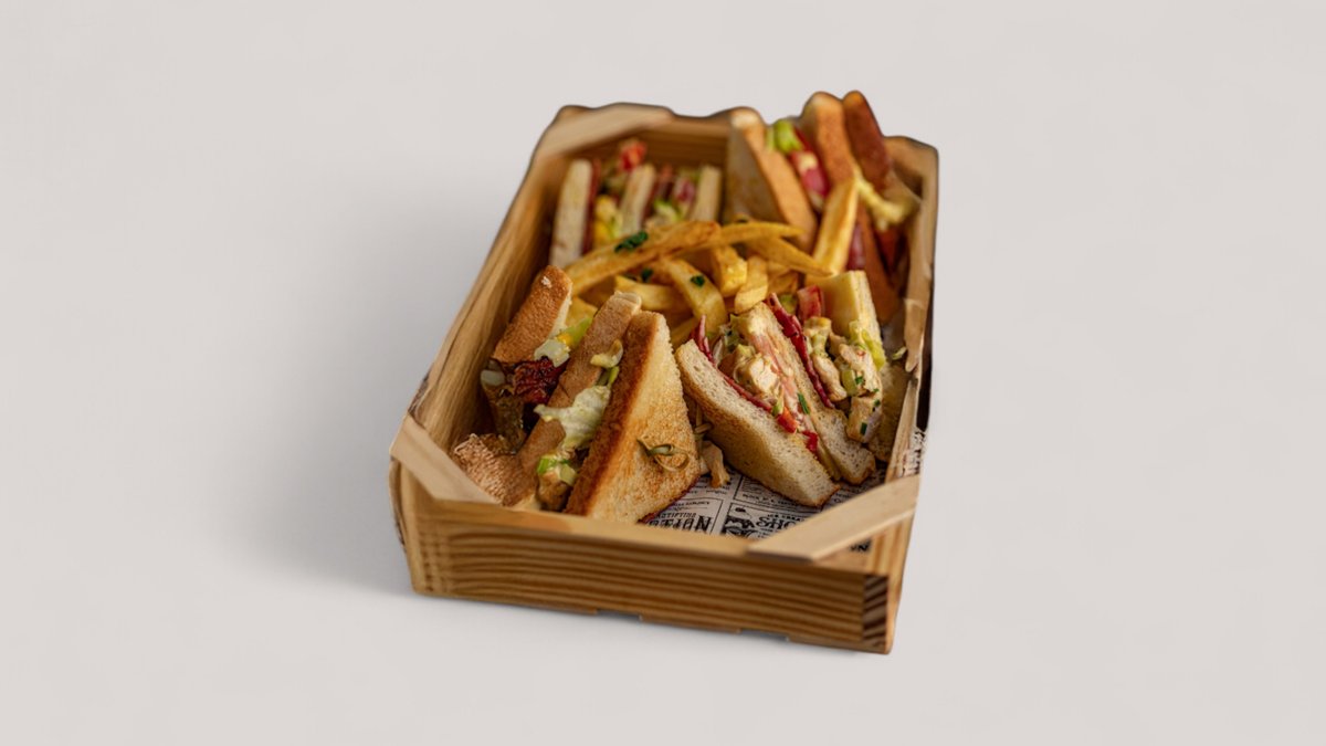 Με 6 ψωμάκια XXL του τοστ, τυρί gouda, ζαμπόν, μπέικον, ντομάτα, μαρούλι και μαγιονέζα. Συνοδεύεται από πατάτες τηγανητές