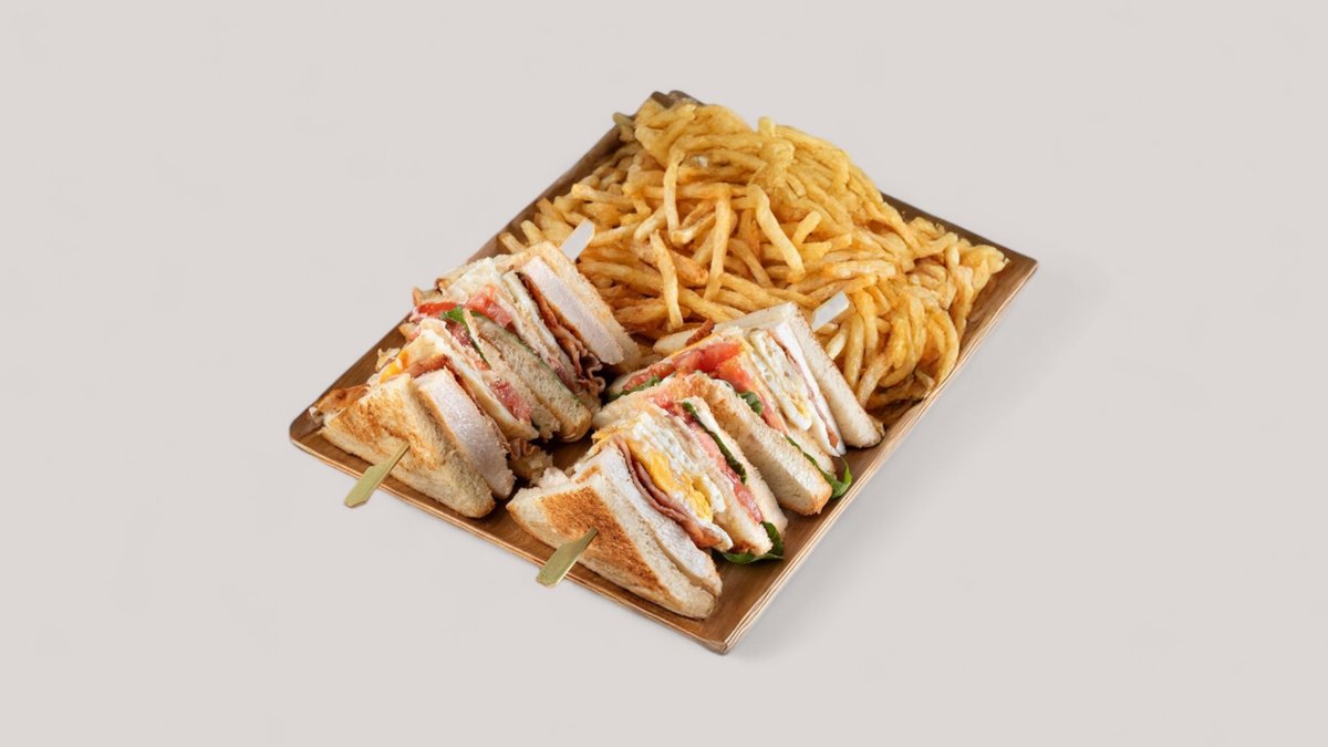 Με 6 ψωμάκια XXL του τοστ, τυρί gouda, γαλοπούλα, μπέικον, ντομάτα, μαρούλι και μαγιονέζα. Συνοδεύεται από πατάτες τηγανητές