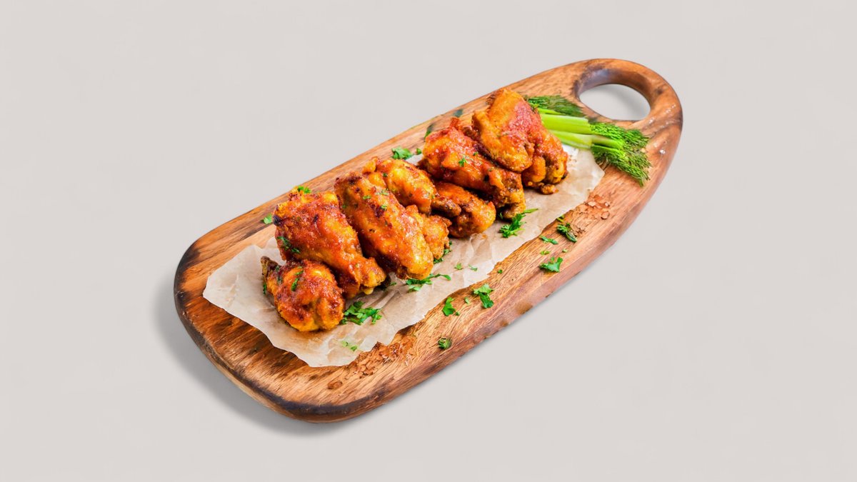 6 Τεμάχια. Ελαφρώς πικάντικες φτερούγες κοτόπουλο. Συνοδεύονται από BBQ sauce