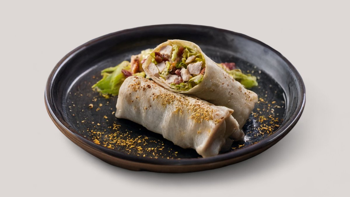 Με τυρί, μαρούλι, philadelpia, bacon και κοτόπουλο. Συνοδεύεται από πατάτες τηγανητές