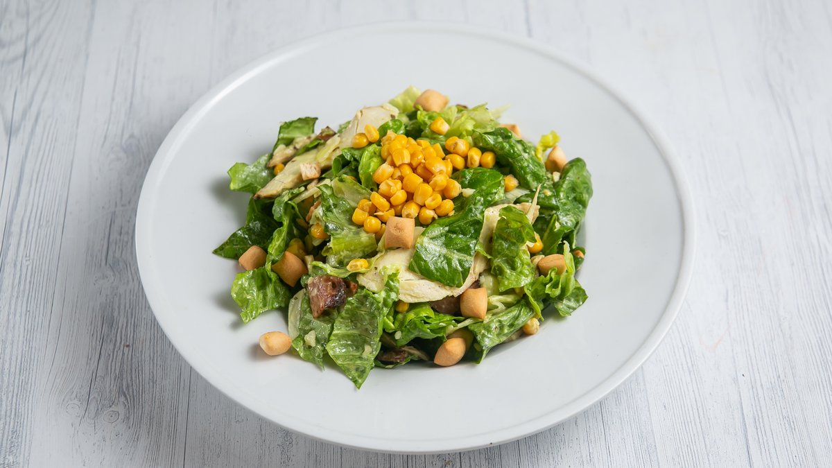 Σαλάτα με μαρούλι, παρμεζάνα, κοτόπουλο, κρουτόν και σως Καίσαρα