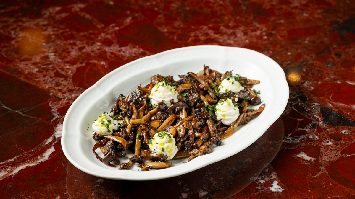Μανιτάρια σωτέ πλευρώτους, shimeji, gremolata μυρωδικών, λάδι τρούφας & ricotta.