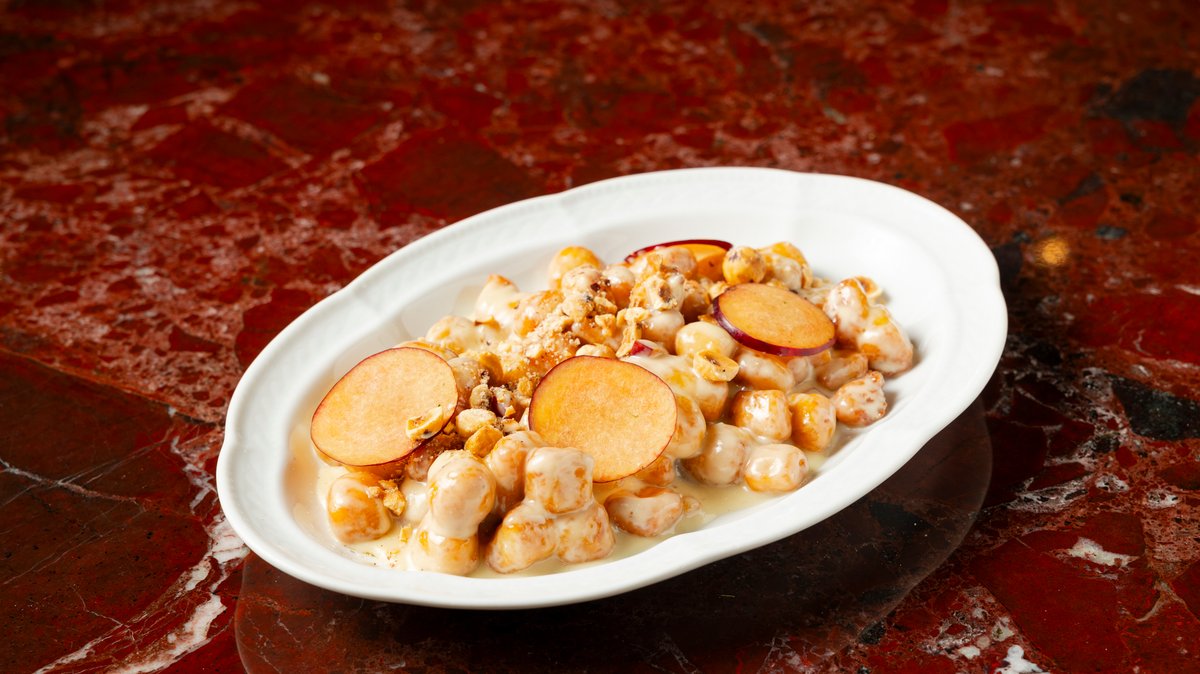 Χειροποίητα crocante gnocchi πατάτας, κρέμα gorgonzola dolce, βανίλια & φουντούκια