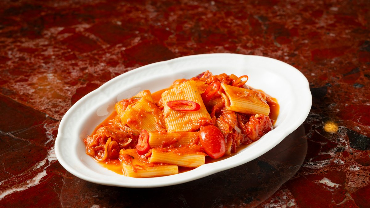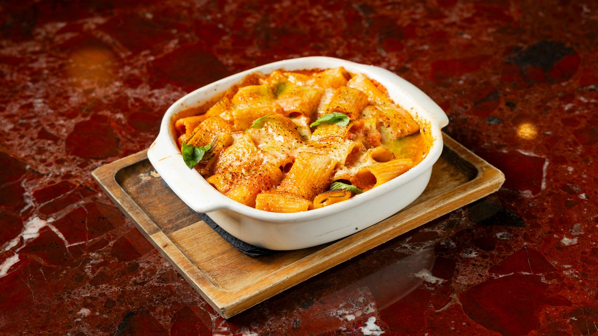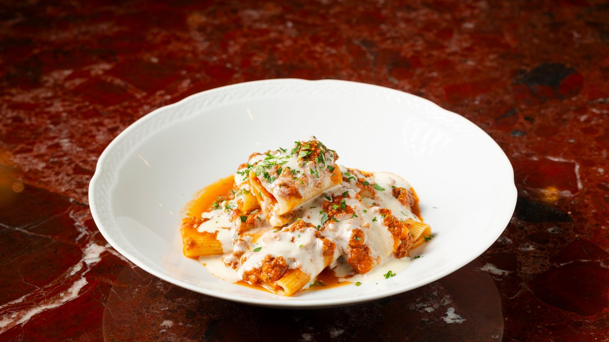Paccheri με bolognese από μοσχάρι με κρέμα παρμεζάνας 36μηνης ωρίμανσης.