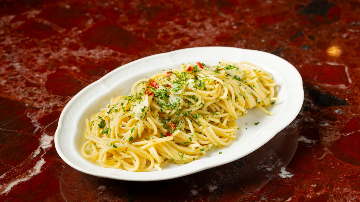 Spaghetti με extra παρθένο ελαιόλαδο, σκόρδο και καυτερές πιπερίτσες