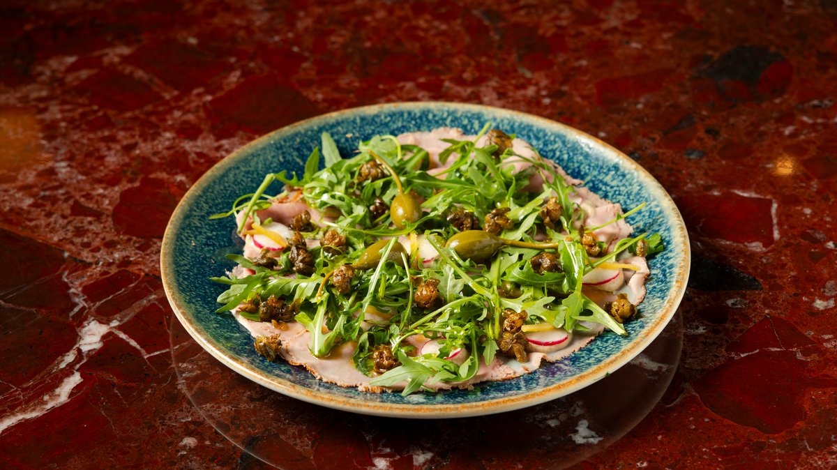 Νουά Μόσχου, σάλτσα Tonnata, ραπανάκι, παστό λεμόνι & κάπαρη