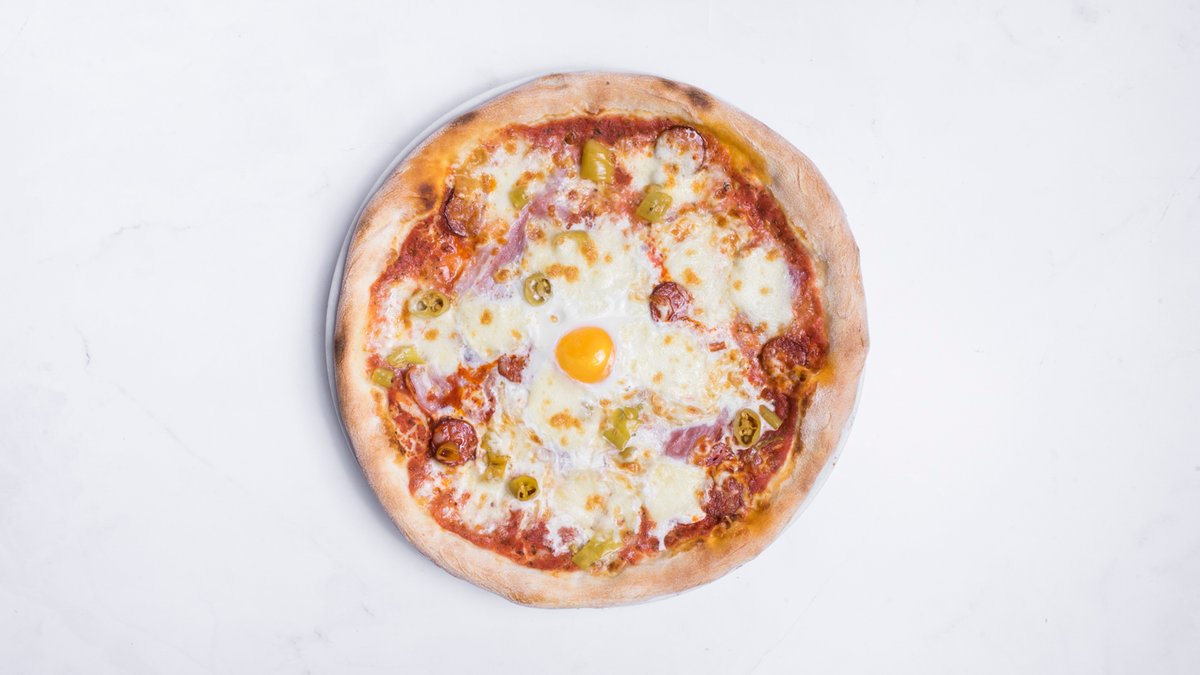 Με σάλτσα ντομάτας, mozzarella, gouda και αυγό