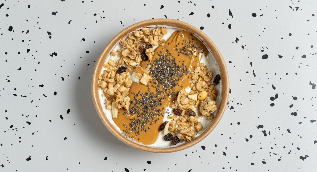 Γιαούρτι πλούσιο σε πρωτεΐνες με φυστικοβούτυρο, τραγανή granola & σπόρους Chia.