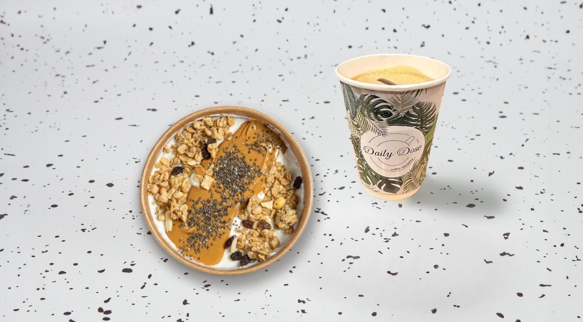 1 Καφές της επιλογής σου, 1 μπάρα Superfoods της επιλογής σου και 1 νερό 0.5 l.
