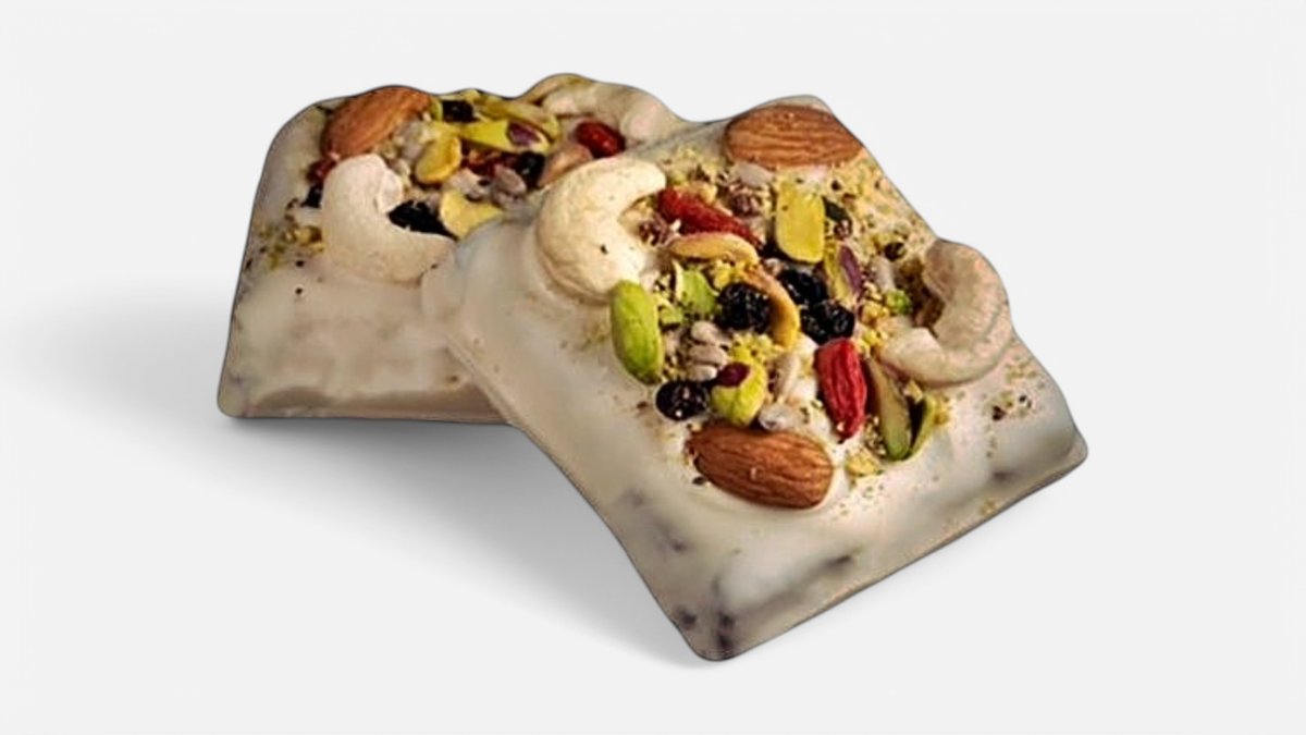 Περιέχει Φυστικοβούτυρο, μέλι, βρώμη, πίνατ, κράνμπερι, σοκολάτα μαύρη, χουρμάς, φλέικς σοκολάτας γάλακτος, σοκολάτα καραμέλα