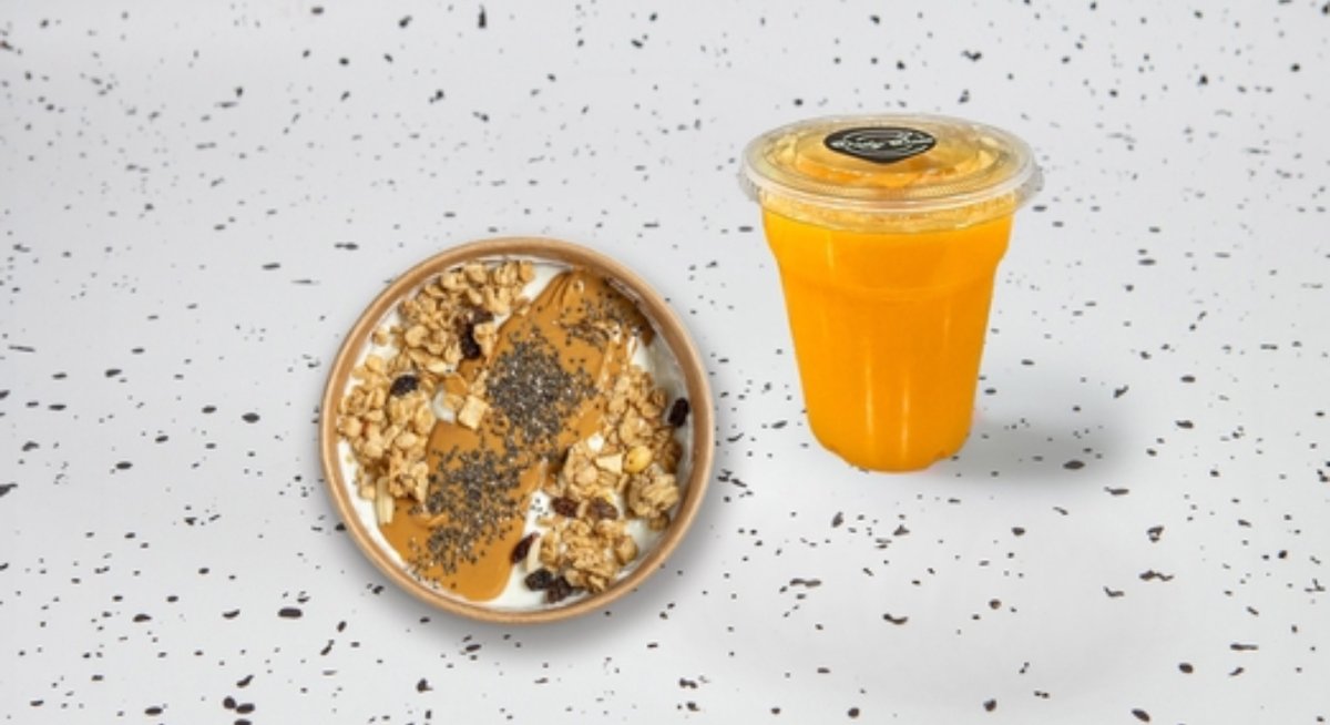 Ένας φυσικός χυμός πορτοκάλι και ένα healthy bowl δημιουργούν έναν φρέσκο, θρεπτικό και ενεργειακό συνδυασμό, ιδανικό για ένα υγιεινό πρωινό ή ένα ισορροπημένο snack.