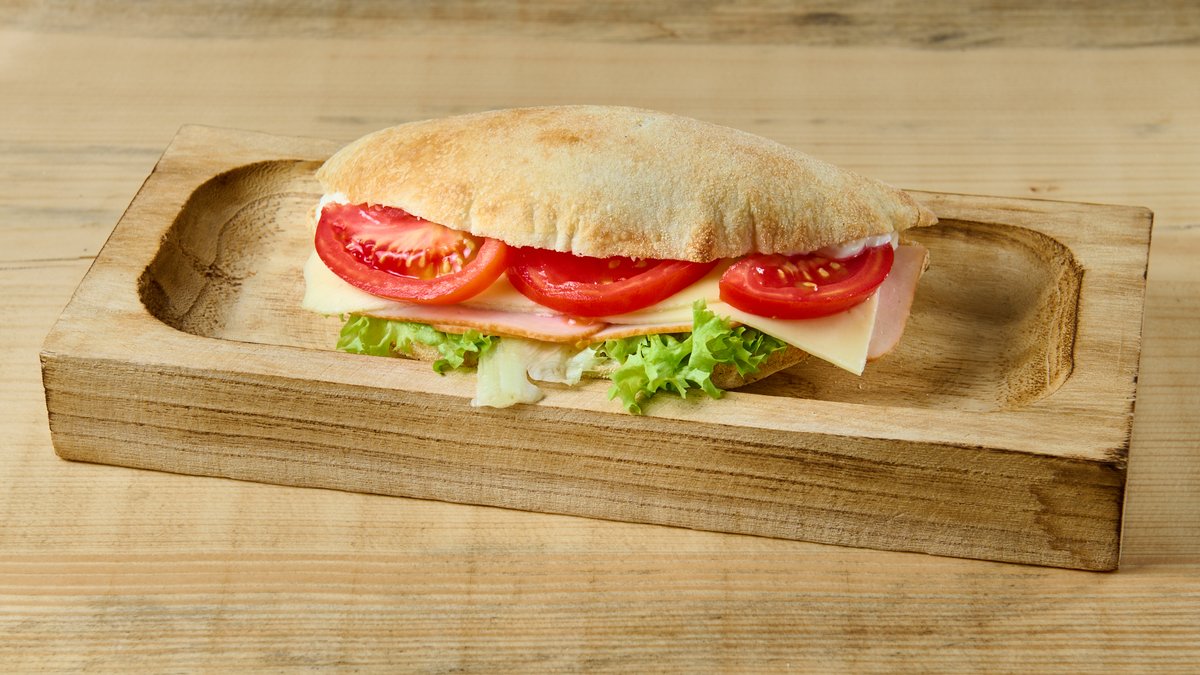 Με γαλοπούλα καπνιστή, gouda, ντομάτα, λόλα και μαγιονέζα