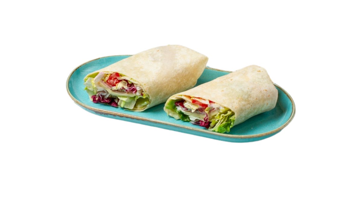 Τορτίγια με φιλέτο κοτόπουλο, αυγό, καλαμπόκι, ρόδελα τομάτας, τυρί, κάρυ, μαγιονέζα
