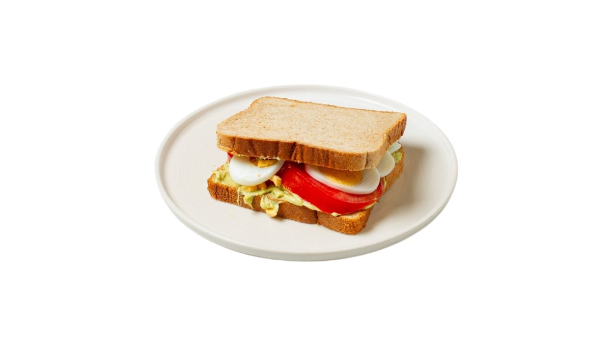 Με ομελέτα, ντομάτα, μαγιονέζα και γραβιέρα