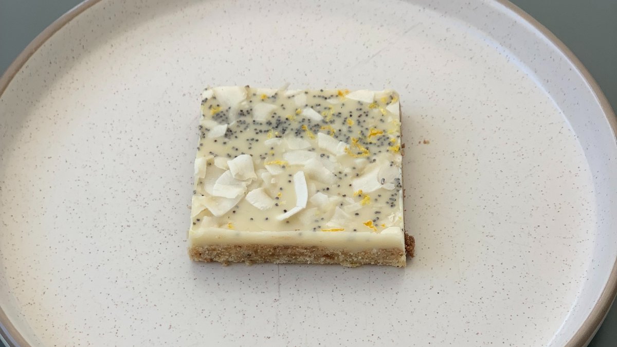 Με ινδοκάρυδο, χουρμά, αλεύρι καρύδας, μέλι, φουντούκι, τζίντερ, κουρκουμά, ξύσμα λεμόνι, παπαρουνόσοπορο, flakes καρύδας και λευκή σοκολάτα.