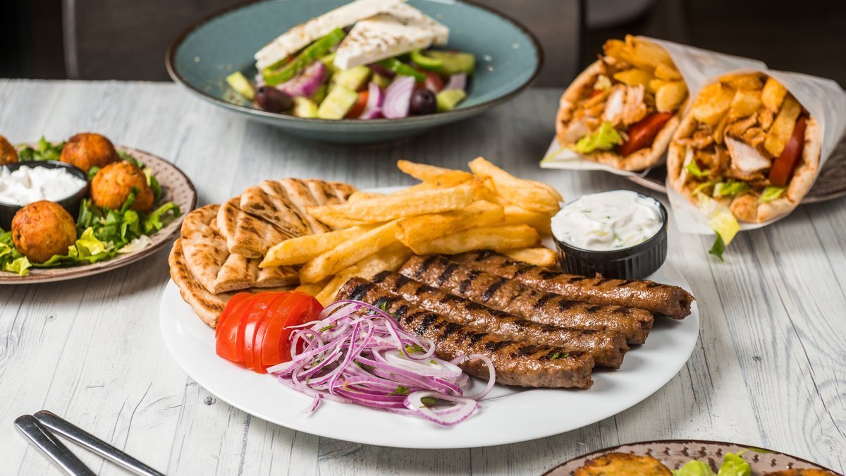 Με 2 μπριζολάκια χοιρινά, 1 μπιφτέκι κοτόπουλο, 1 μπιφτέκι μοσχαρίσιο, 1 καλαμάκι κοτόπουλο και 1 καλαμάκι χοιρινό. Συνοδεύεται από παραδοσιακές πίτες, πατάτες τηγανητές και ροζ σως