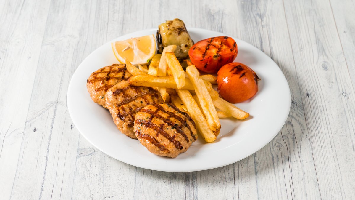 Με 4 μπριζολάκια χοιρινά, 2 μπιφτέκια κοτόπουλο, 2 μπιφτέκια μοσχαρίσια, 2 καλαμάκια κοτόπουλο και 2 καλαμάκια χοιρινά. Συνοδεύεται από παραδοσιακές πίτες, πατάτες τηγανητές και ροζ σως