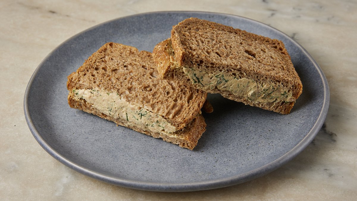 Προζυμένιο ψωμί ολικής, χειροποίητη τονοσαλάτα, ντοματίνια