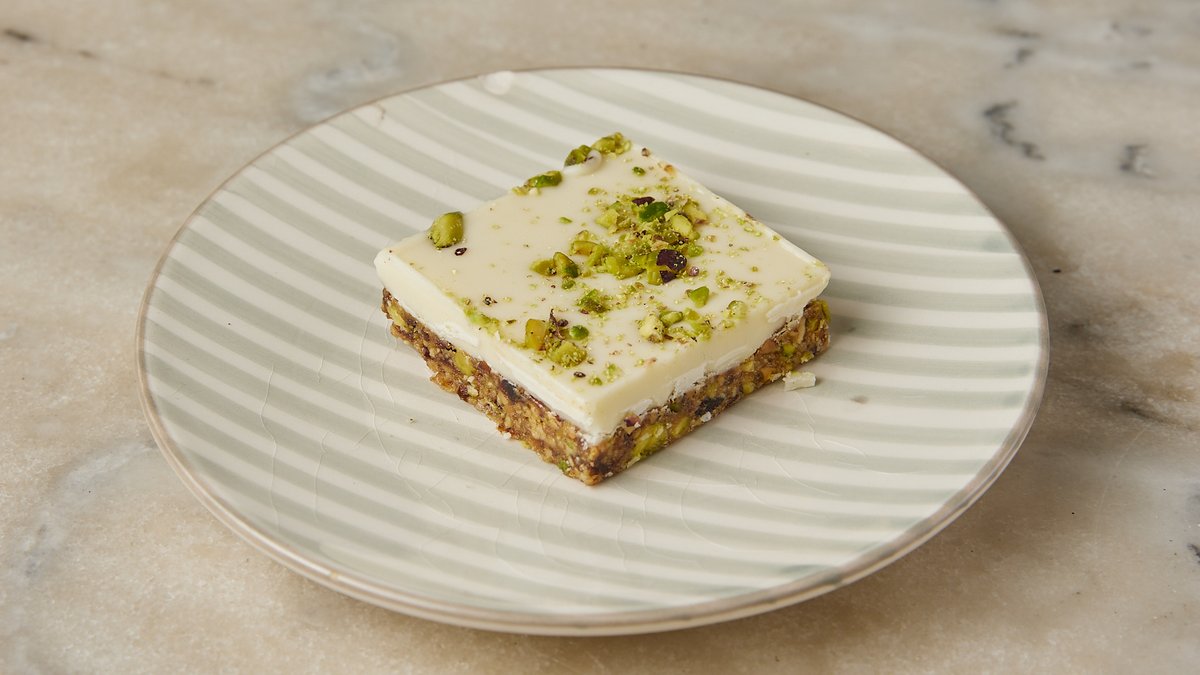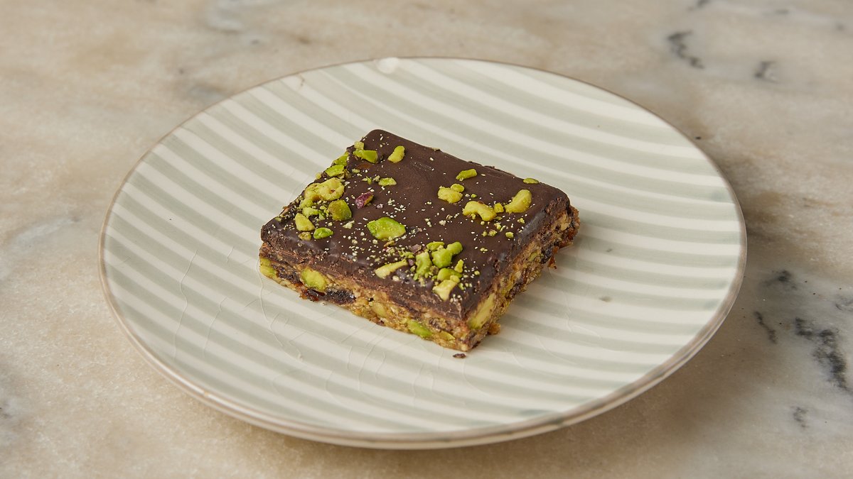 Με φιστίκια, μέλι, αλεύρι καρύδας και μαύρη σοκολάτα