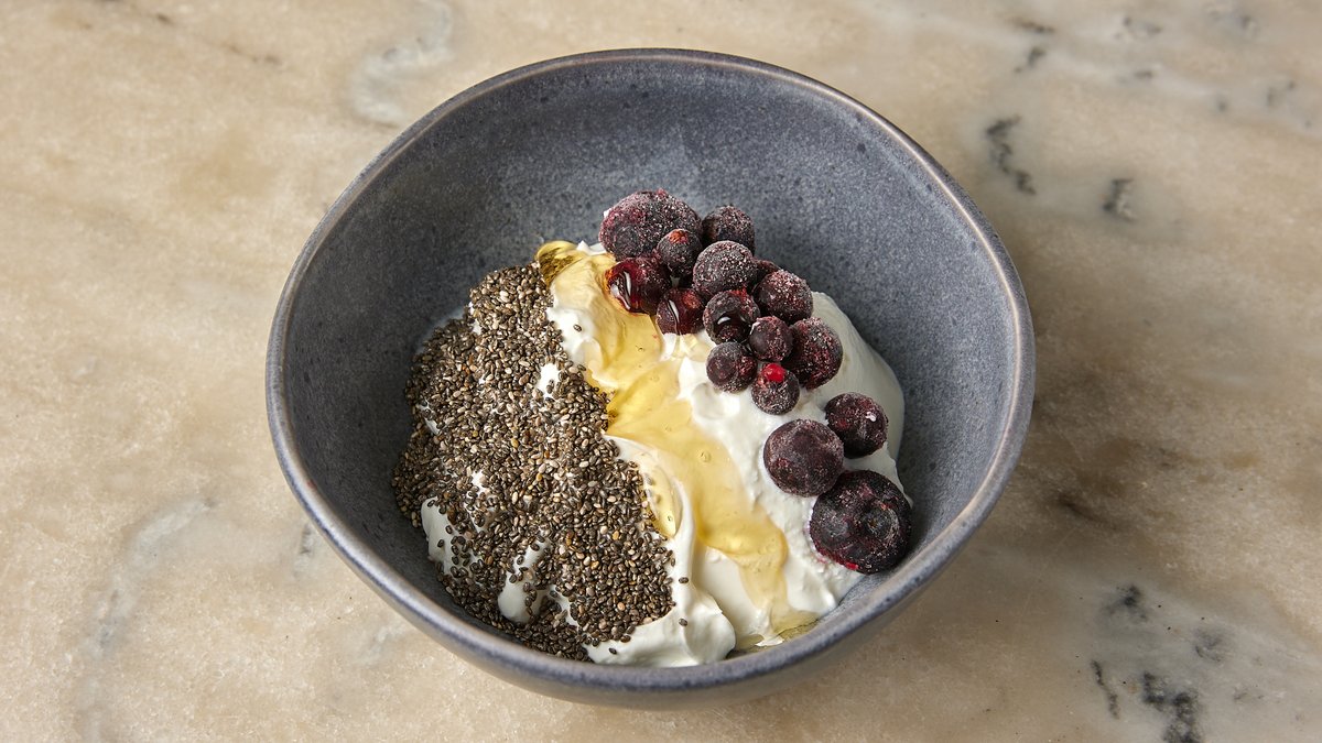 Γιαούρτι με blueberries, μέλι, σπόρους, τσία