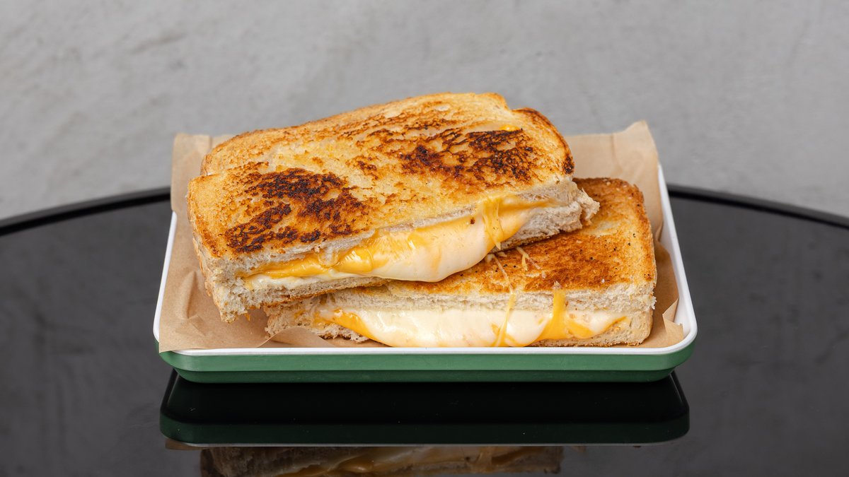 Brioche ψωμί του τοστ, τυρί Gouda, τυρί Cheddar, πιπέρι.