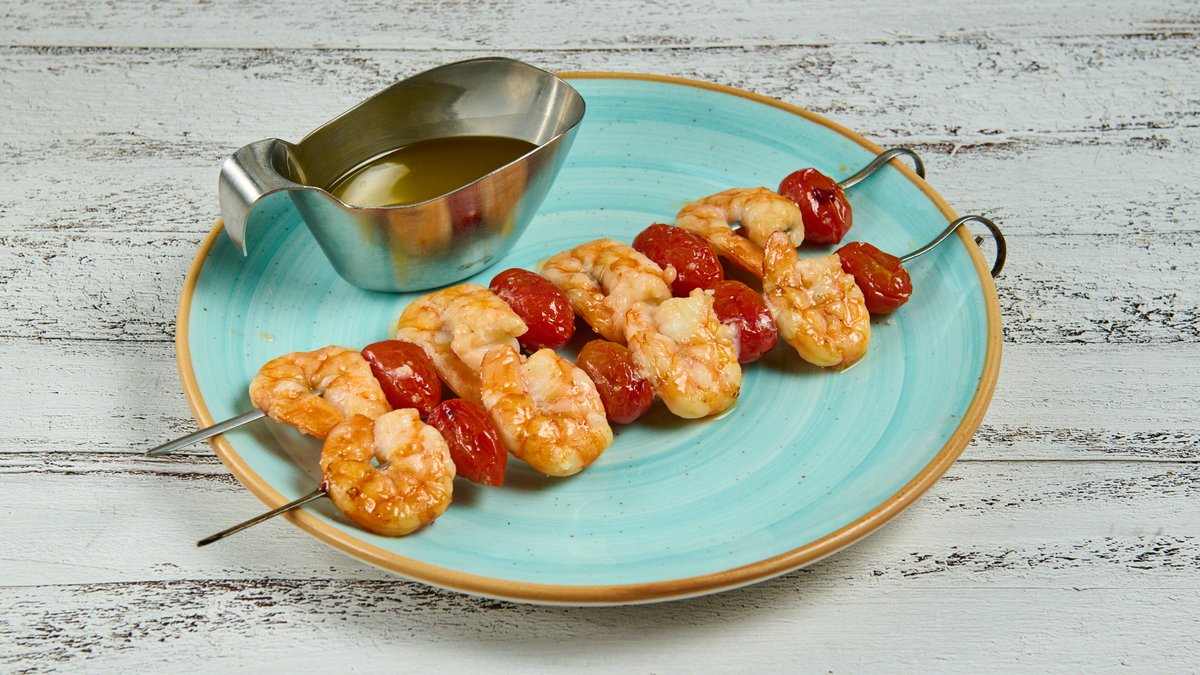 2 Τεμάχια με 4 γαρίδες ανά τεμάχιο και ντοματίνια