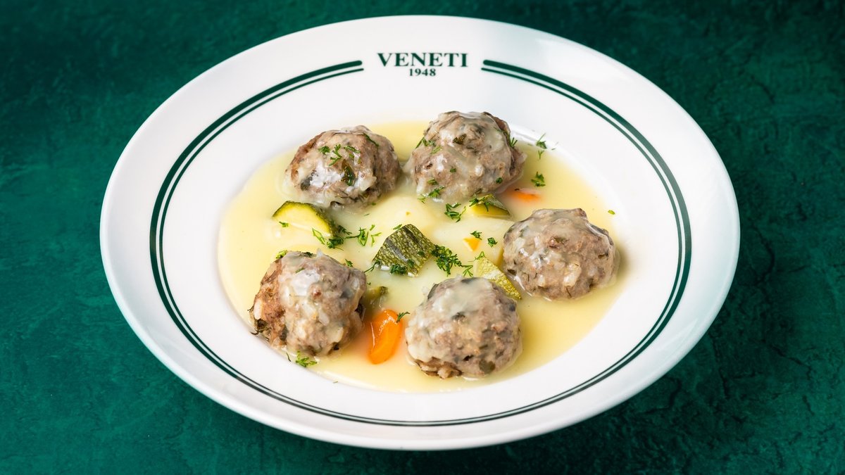 Από φρέσκο μοσχαρίσιο κιμά με ρύζι, πατάτες, καρότο, κολοκύθι, αρωματισμένα με φρέσκο άνηθο και αυγολέμονο