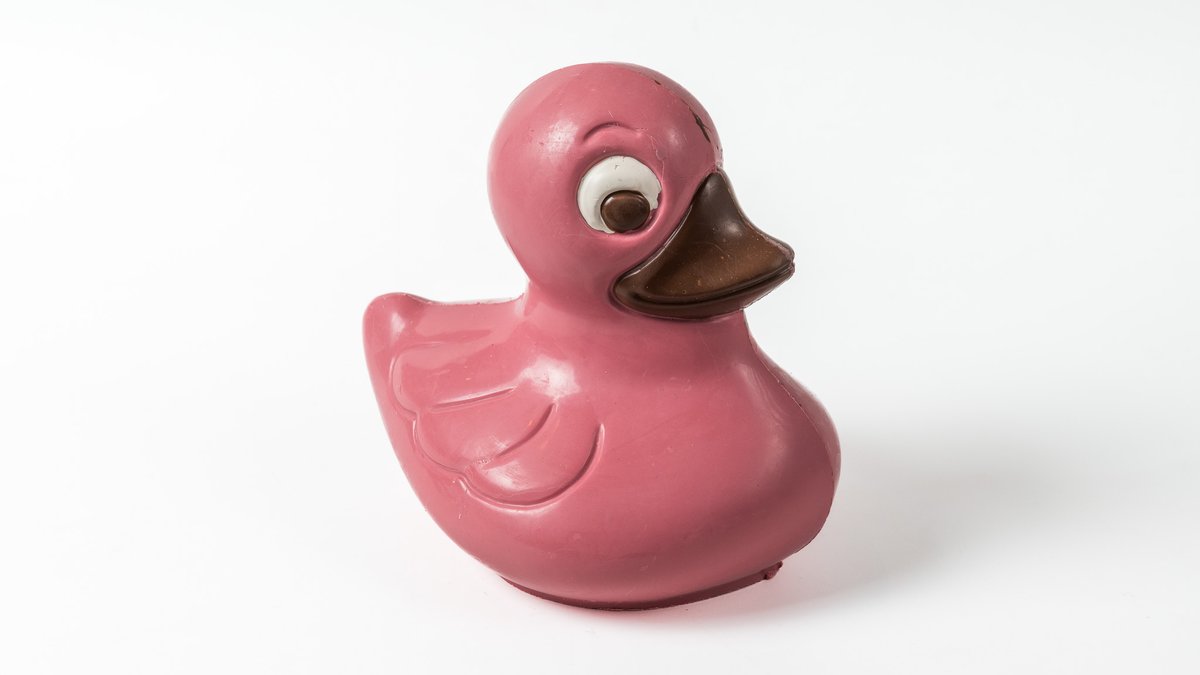 Πασχαλινή φιγούρα διπλής σοκολάτας φτιαγμένη από βέλγικη σοκολάτα γάλακτος υψηλής ποιότητας Callebaut, σε σχήμα πάπιας. Αποτελείται από λευκή χρωματισμένη σοκολάτα εξωτερικά σε ροζ απόχρωση και σοκολάτα γάλακτος εσωτερικά. (20 εκατοστά) *Περιέχουν ίχνη από γάλα, αυγό, σόγια, γλουτένη και ξηρούς καρπούς. Για περισσότερες πληροφορίες, παρακαλούμε όπως επικοινωνήσετε μαζί μας.