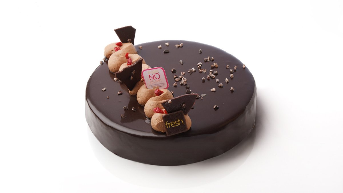 Κέικ διπλής σοκολάτας χωρίς προσθήκη ζάχαρης και χωρίς γλουτένη, με επικάλυψη απο γλάσο σοκολάτας και crue de cacao. * Περιέχουν ίχνη από γάλα, αυγό, σόγια, γλουτένη και ξηρούς καρπούς. Για περισσότερες πληροφορίες, παρακαλούμε όπως επικοινωνήσετε μαζί μας.