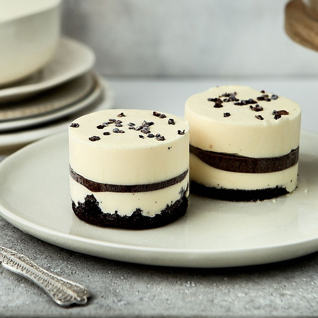 Μους βανίλιας & cremeux σοκολάτας υγείας σε σοκολατένιο crumble