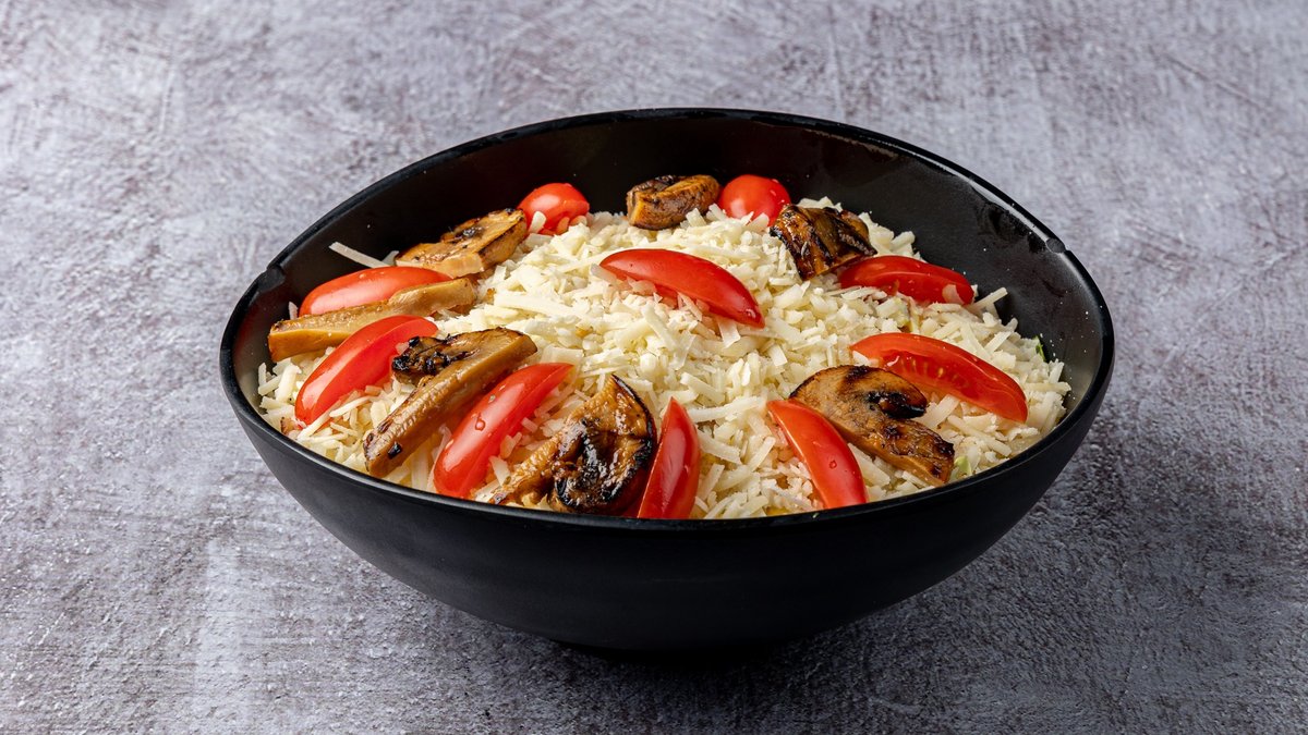 Με μανιτάρια, πράσινη πιπεριά, κόκκινη πιπεριά, κρεμμύδι, σάλτσα και φέτα. Συνοδεύεται από γαρνιτούρα της επιλογής σου