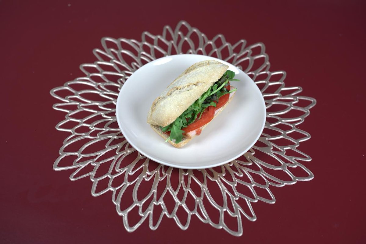 Με γαλοπούλα, μπέικον, κοτόπουλο, cheddar και ομελέτα. Ντομάτα, μαγιονέζα και mix σαλάτας.