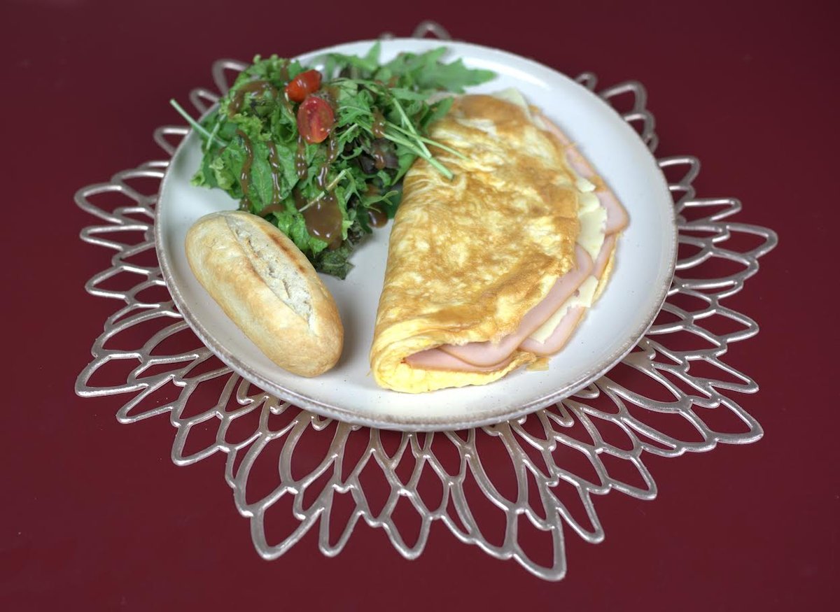 Με 3 αυγά, γαλοπούλα και τυρί gouda. Συνοδεύεται με mix σαλάτας και mini ψωμάκι.