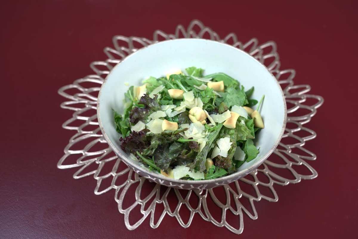 Με mix σαλάτας, άνηθο, φρέσκο κρεμμύδι, παρμεζάνα και κρουτόν.